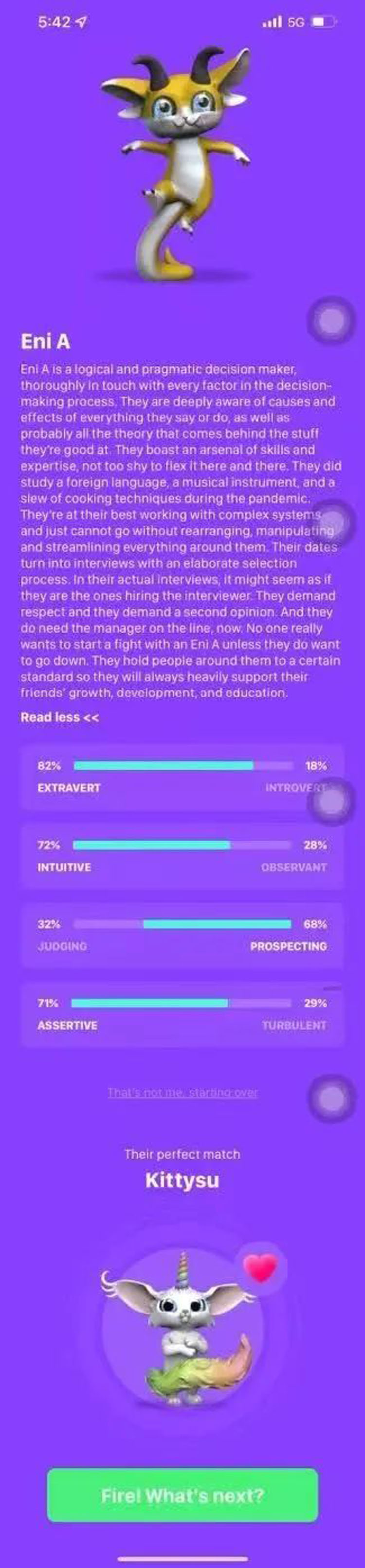 除了外觀,不同的圖騰也代表在性格、決策、情感等維度的不同特點(diǎn),并且 XOXO 還會(huì)根據(jù)測(cè)試結(jié)果給出最適合彼此的圖騰并作為匹配算法中的重要一環(huán)。