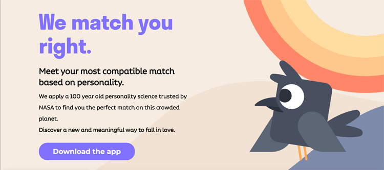 在選定并核驗(yàn)過自己的人格類型后,系統(tǒng)會(huì)根據(jù)用戶的類型為其匹配合適的人格類型,而且會(huì)針對(duì)類型進(jìn)行匹配結(jié)果的預(yù)測(cè)分級(jí),分為推薦匹配、良好匹配、潛在匹配以及試試運(yùn)氣,自上向下匹配程度逐漸降低。推薦匹配使兩個(gè)人更容易理解彼此,而到了試試運(yùn)氣則是兩人完全相反可能會(huì)擦出不一樣的火花。