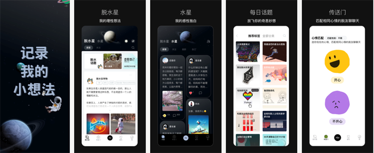 和以上產(chǎn)品更偏向于 Social 或 Dating 的產(chǎn)品定位不同,脫水似乎更偏向于關(guān)注內(nèi)容的社區(qū)產(chǎn)品。用戶可以在脫水星球分享自己的理性看法、也可以在水星分享自己的感性獨(dú)白。